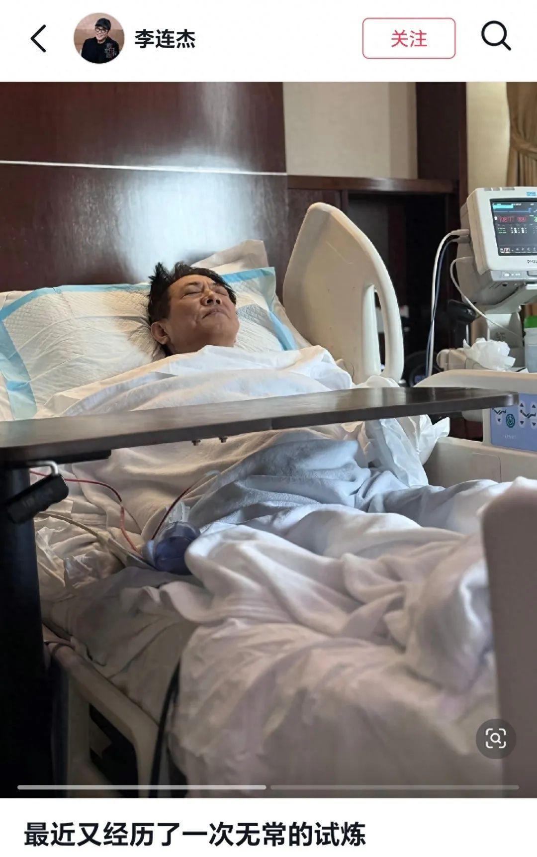 李连杰在社交媒体发布的住院动态图片。 图/李连杰社交媒体截图8月28日,李连杰晒视频回应此前“硬件返厂维修”,讲述病情及手术情况。李连杰称在4月26日生日时无意中照镜子,发现脖颈部位有肿块,摸上去硬硬的,吃了一周消炎药发现情况不对,在医生建议下,一边工作一边先后做了B超、CT和穿刺活检,基本确定是良性,但有些东西看不清,最终在8月份决定动手术,经切片化验确定百分百是良性。李连杰表示,自己询问过医生,接受的手术不算大:“按医学来讲分1到7级,最高难度是7级,每一级ABCD这么分,28个等级,医生说我这个手术是医学上的第5的D,也是第20级。”李连杰表示自己也是普通人,现在没事了,要继续回来工作了,“对我来说,你知道硬件出了问题,就要面对,我任何事情都OK,不OK也OK,我是一个普通人,有问题就修,修理就拿掉,拿掉就没事了,现在发展到好的一块。假如不是良性的,那就面对,甚至万分之一十万分之一意外在手术床上走了,也有可能,什么都要去面对。”来源:荆楚网(湖北日报网)