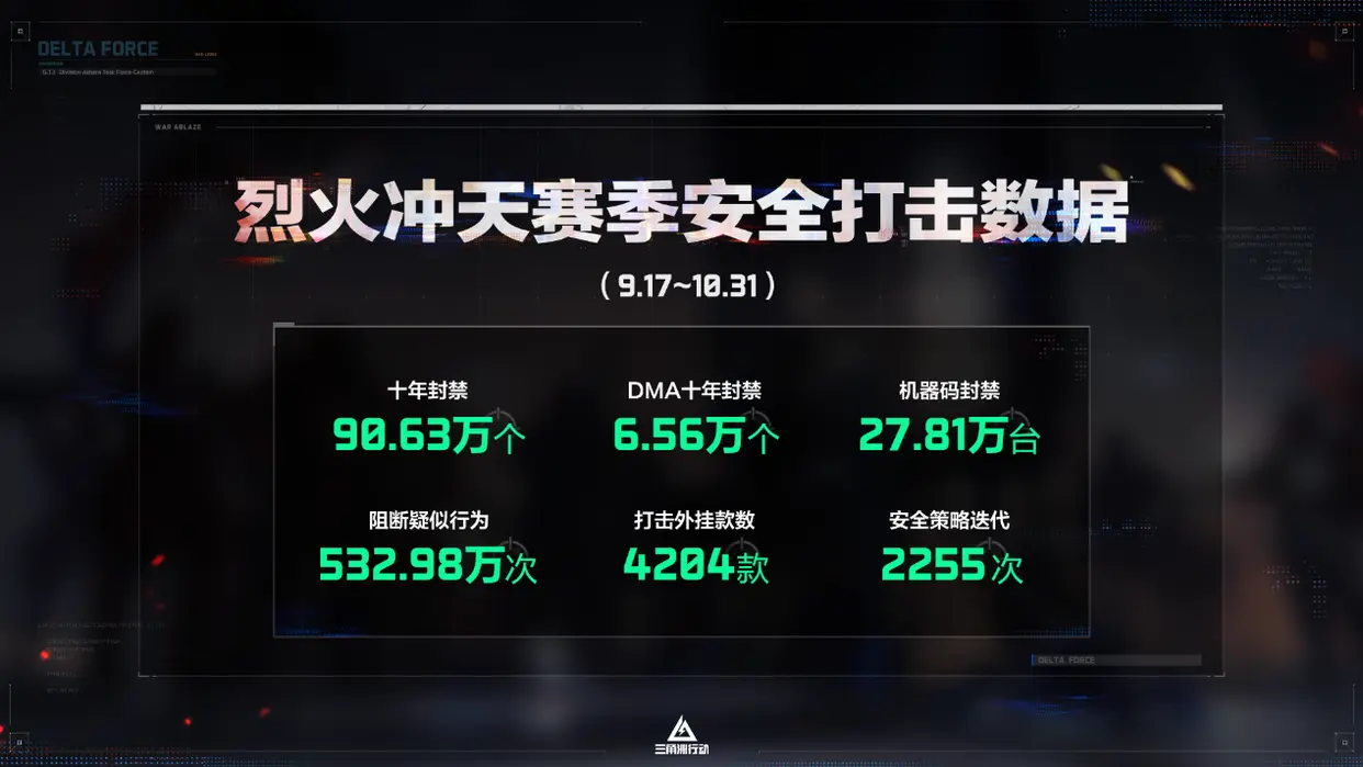 在上周末《三角洲行动》新版本前瞻直播中,官方公布了S6赛季的反作弊成果:不到一个半月的时间里,超90万账号被十年封禁,阻断疑似作弊行为500余万次,机器码封禁近30万台,甚至DMA硬件外挂也封禁了6.5万个。在感叹反作弊力度的同时,也不得不承认在最新的财报数据(9月国服日活超3000万,其中PC端用户超过1000万,三季度流水位居行业前三)的背后,企图作弊的人数也在不断激增。
