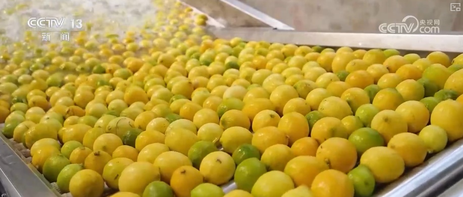 在四川简阳市雷家镇的一个柠檬园里,金黄饱满的柠檬采摘后,马上被送到果园附近的柠檬出口基地,经自动化的清洗、分拣、包装,不出两小时柠檬就处理完毕。